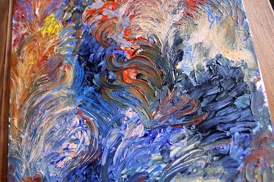 Magic stories about a fairy forest, about fabulous creatures. Magic forest clearings where evil spirits and good fairies appear. Plants that glow in the dark. Height: 35,6 см Width: 27,9 см Depth: 0,5 см Abstraction painting. Canvas stretched over cardboard. Acrylic, ink on canvas, UV protection varnish, artist's signatur - 2022.